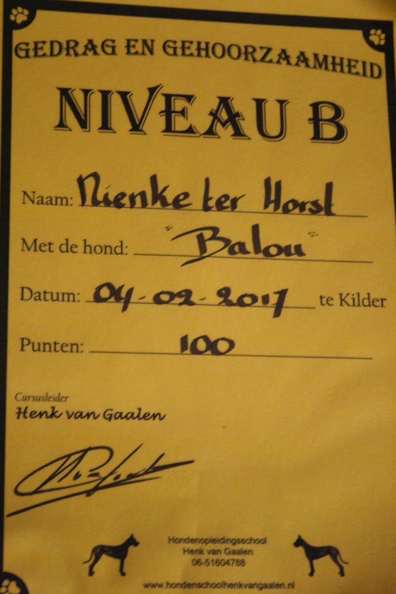 Balou is alweer geslaagd voor haar B diploma met maar liefs 100 punten , op naar de C !