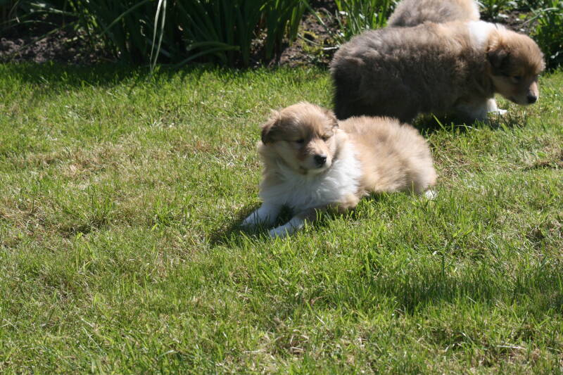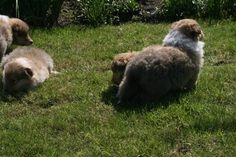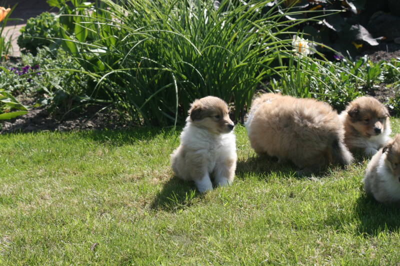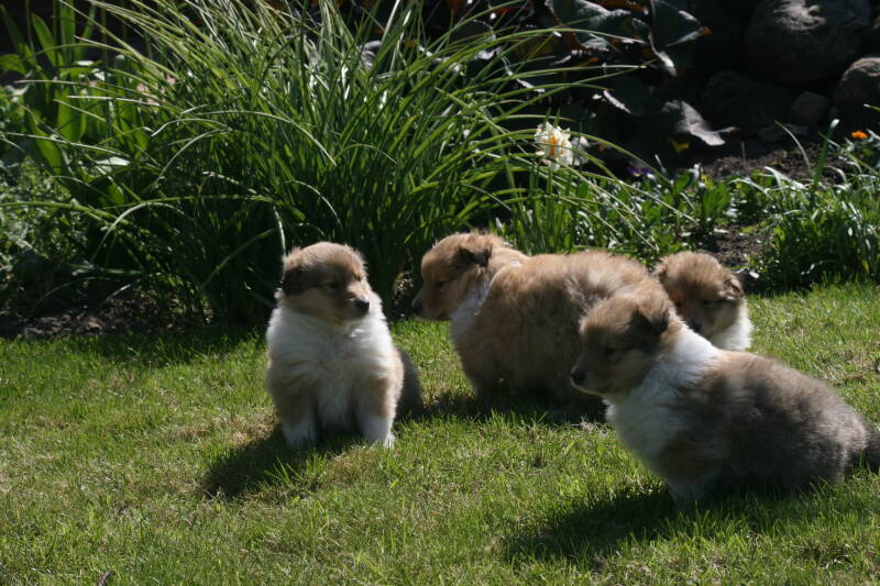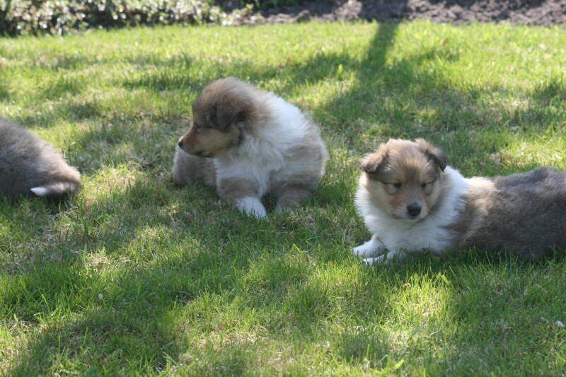 Vandaag wezen kijken bij de pups van onze reu Spike Iridescent Free Style. Het eerste nest van Spike maar gelijk een super nest. Beide ouders zijn op heupen en ogen gecontroleerd en goed bevonden. Wat een vachten zitten er op. Een dikke pluim, deze pups zijn het waard om collie engels type te worden genoemd. Een prachtig nest, nu op de leeftijd van 5 weken. Hieronder de foto's van het nest. De drie teefjes eerst, daarna de grote broer. Er zijn nog enkele teefjes beschikbaar.