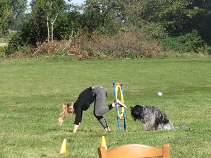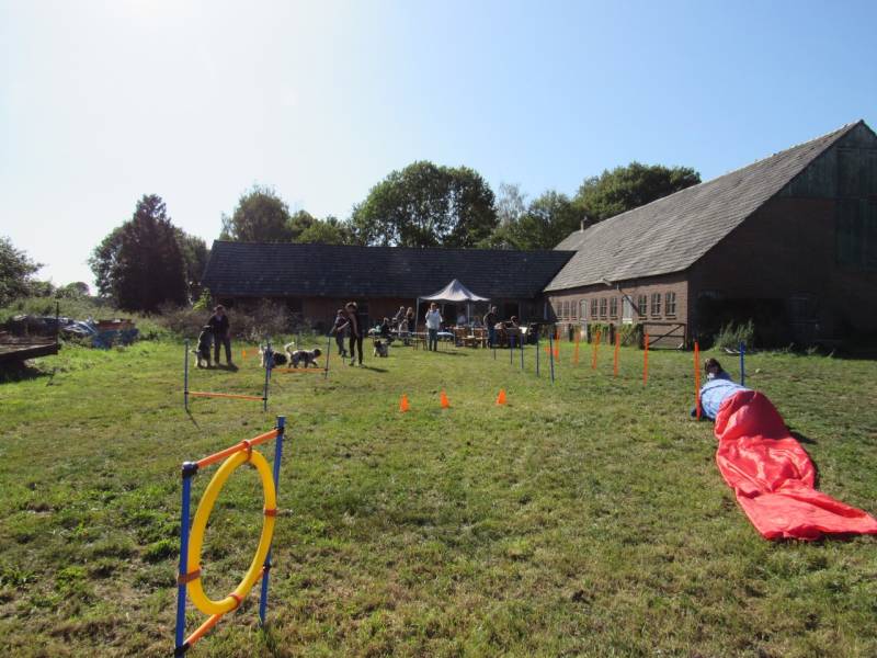 Daarna gezellig naar ons huis in Azewijn, waar we een hindernisbaantje hadden neergezet en genoeg tafels en stoelen om gezellig onder het genot van een kopje koffie te babbelen over het wel en wee van de doesjes.